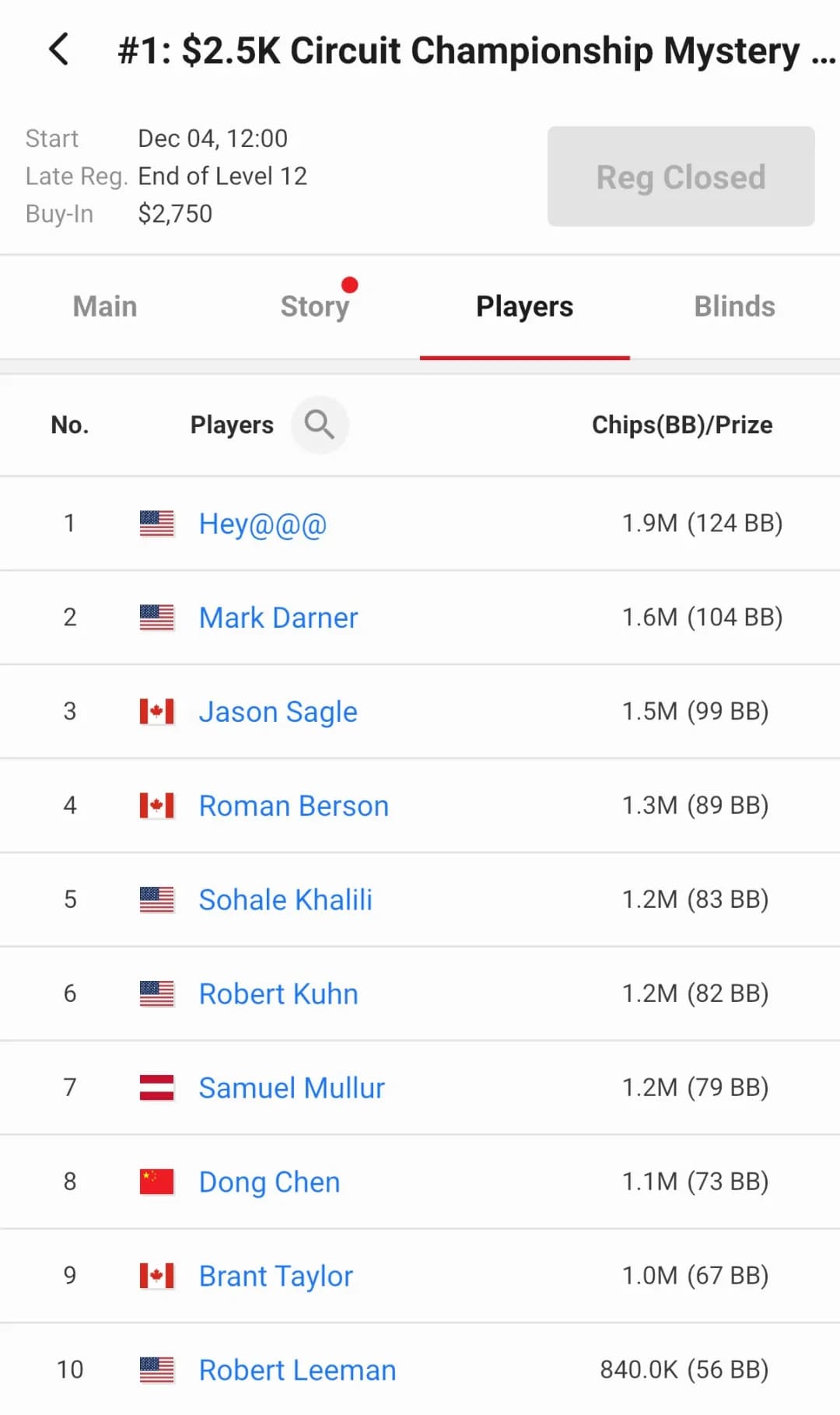 共93名参赛者角逐6,975,000刀奖池,只有15个名次可以获得最低119,000刀奖励,而冠军将赢下1,796,000刀和WSOP金手链。