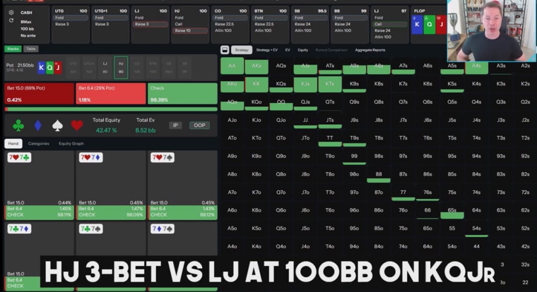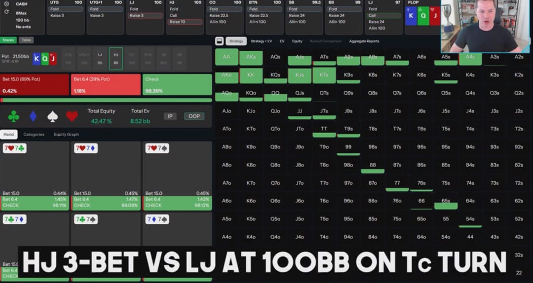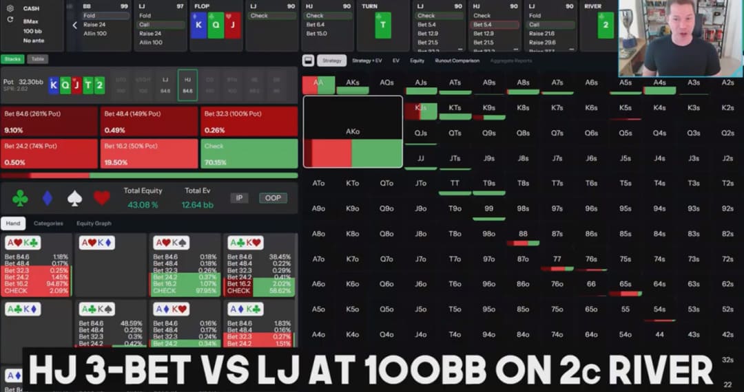 Robl凭借对GTO原理的深刻理解、对对手范围的精准读牌,以及手握关键阻断牌A♣所带来的信息优势,果断地将“平分底池”的选项撕碎,选择了收益最大化的激进路线。