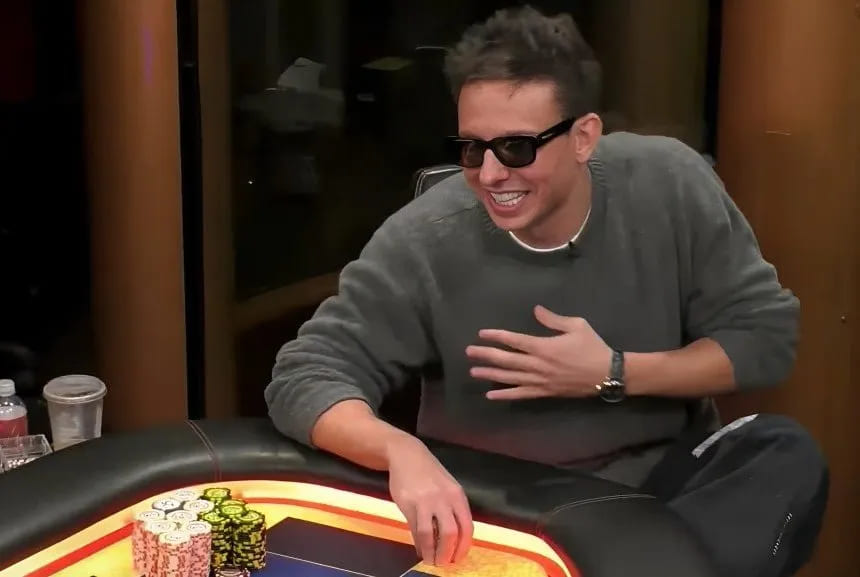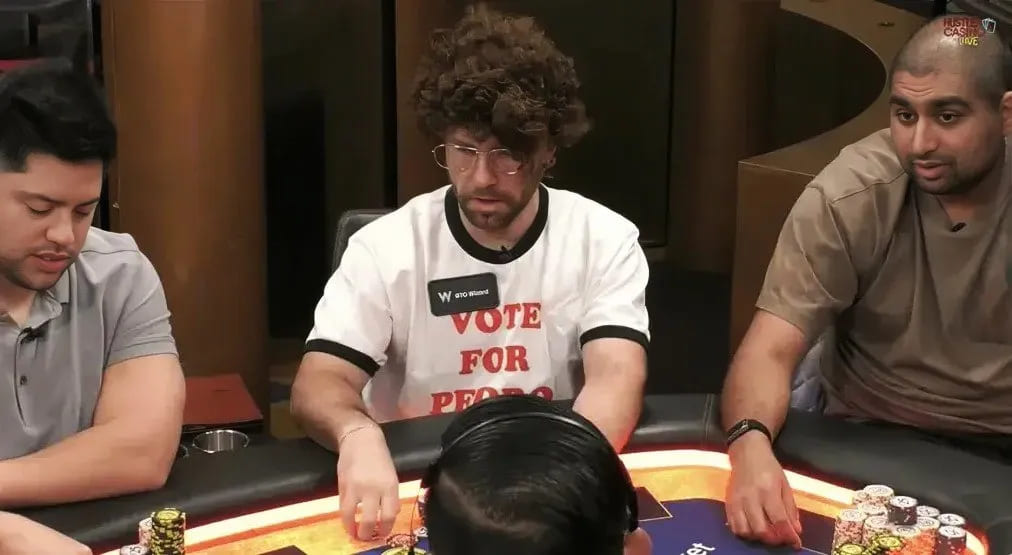 “你要不要用我的订阅码?”Jungleman指着自己身上的GTOWizard袖标,好似在告诉对方“多用Solver练练吧”,惹得Airball和他都笑成一团。