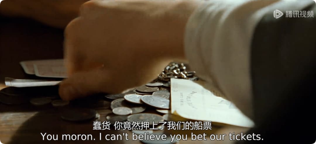 赌注不仅仅是身上的零钱,还包括一把小刀、一块怀表,以及最关键的——两张泰坦尼克号三等舱的船票。