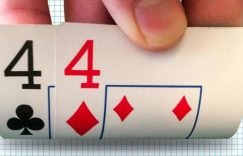 翻后游戏小口袋对子通常比较容易,因为你要么做成了一手超强牌(暗三条),要么错过了翻牌,可以轻松弃牌。然而,有时小口袋对子也会在翻后遇到相当棘手的场合。比如,当你在一个危险翻牌面拿到了暗三条的时候,或者当你感觉对手正在试图迫使你放弃底池的时候。