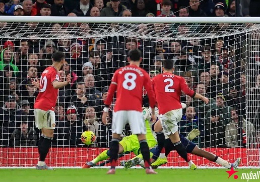 下半场比赛中,第58分钟曼联率先打破僵局,前场围攻中右边路迪亚洛持球吸引防守,随后将球回做中路,卡塞米罗跟进远射在防守队员干扰下形成传球,达洛特禁区内中路停球右脚低射一气呵成,球钻入球门左下死角,曼联队1-0领先。