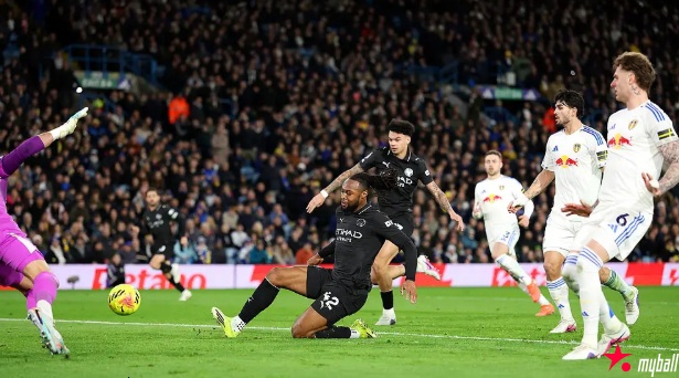 第85分钟,勒温横传,阿姆帕杜射门被曼城后卫挡出。随后,利兹联边路传中,勒温倒钩射门没有踢到,慢镜头回放显示,皮球击中了努内斯的手臂,不过裁判没有表示。