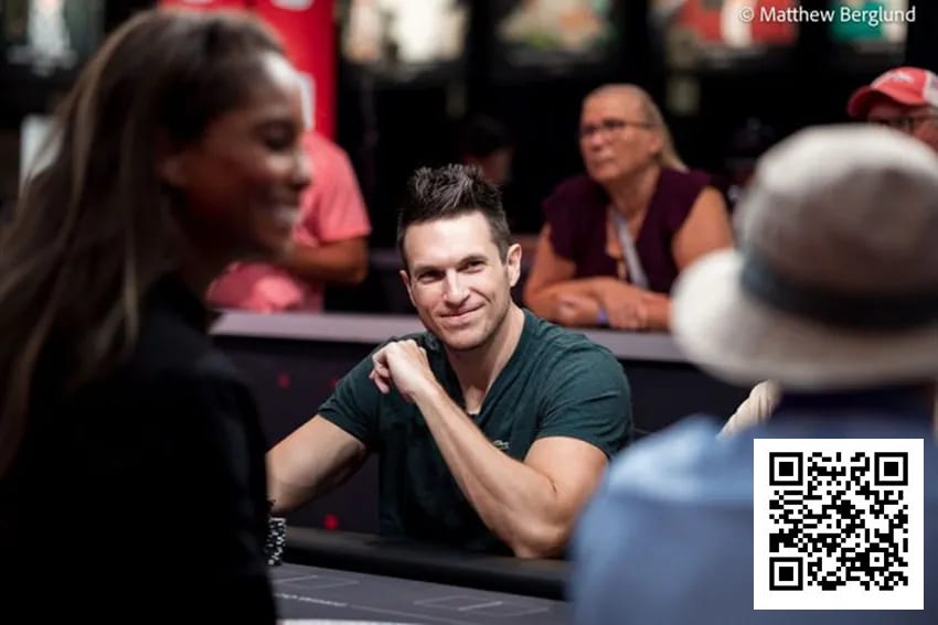 比赛前期,波尔克筹码积累艰难。公共牌面9♦J♣ 4♦10♣时,他手持K♣Q♦组成坚果牌型,河牌K♦出现后,却输给拿着 A♠ Q♣ 的对手,痛失5600美元底池。不过,他很快靠同花听牌和J-high诈唬成功,将差距拉回。