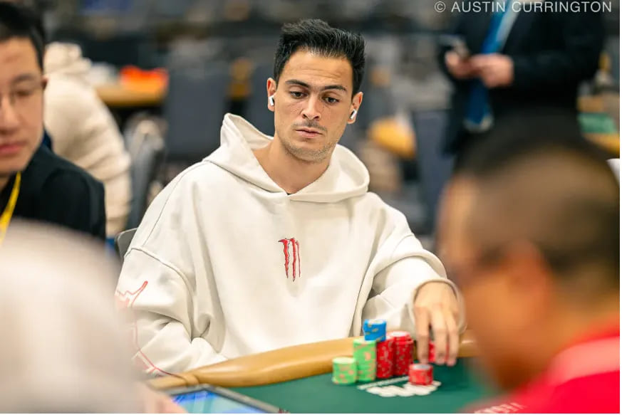 西班牙常客玩家Jon Vallinas领跑最后14人,去年底的WSOP天堂岛站Vallinas在$10K赛事收获亚军,去年Vegas $5K赛事获得第六名。今年春天的Triton济州站他打入三场FT,包括$50K赏金快速赛亚军。