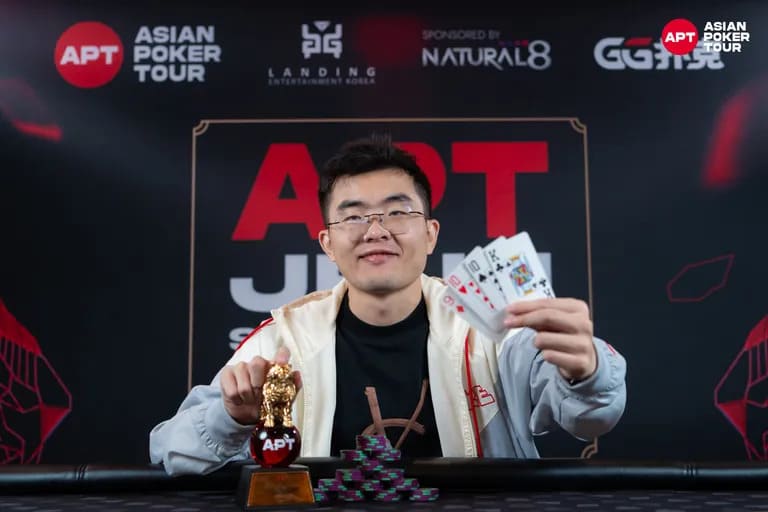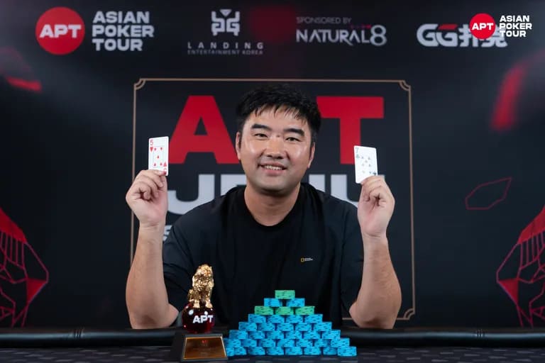 中国选手Houyu Zheng在赛事#27: 高速 – 底池限注奥马哈高牌赛 – 双公共牌 – 炸弹局中夺得个人首个APT冠军,从68份参赛报名的炸弹池赛制中胜出。Zheng凭借此次夺冠,收获4,751,305韩币(约合3,394美元)奖金及一座金狮奖杯。