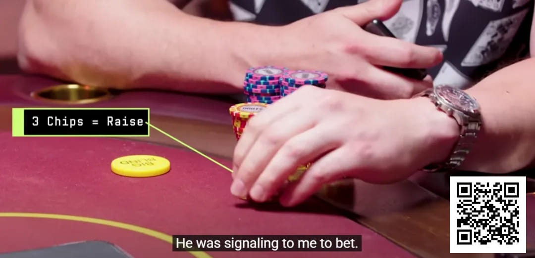 “改造”完成后,Greenberg安排了一场私人的小型牌局,桌上除了他和Tartaro外,还有两位毫不知情的玩家。Tartaro在手机上实时掌握了所有牌序后,通过摆弄不同数量筹码,暗示Greenberg应该弃牌、跟注还是加注。