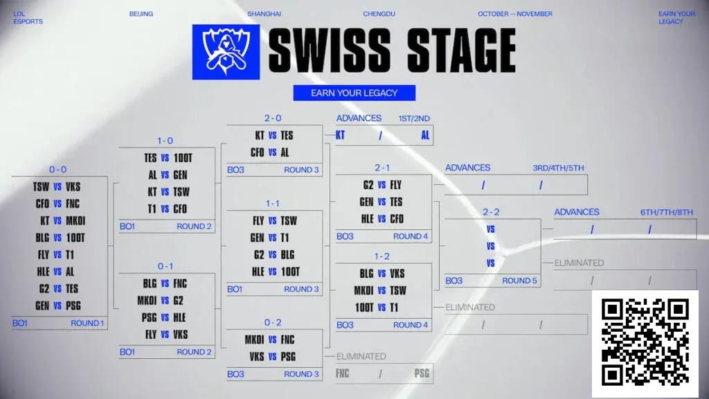 入围赛最终晋级的队伍将前往首次承办全球总决赛的北京智能电竞中心。瑞士轮阶段共有16支队伍参与。每场胜利都将增加队伍晋级淘汰赛的机会,而失利则会使得后续赛程更为艰难。该阶段比赛默认采用单局决胜,仅晋级或淘汰的关键对局采用三局两胜制。