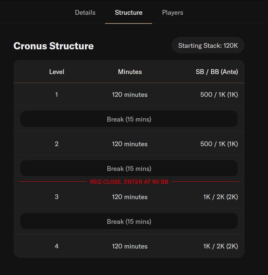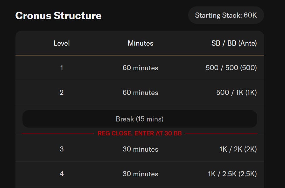 另一方面,让截买前bb数更加合理(30bb区间),降低延迟注册带来的不公平优势(截买前短码上桌,通过All-in or fold策略争取翻倍获益)。