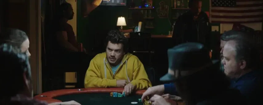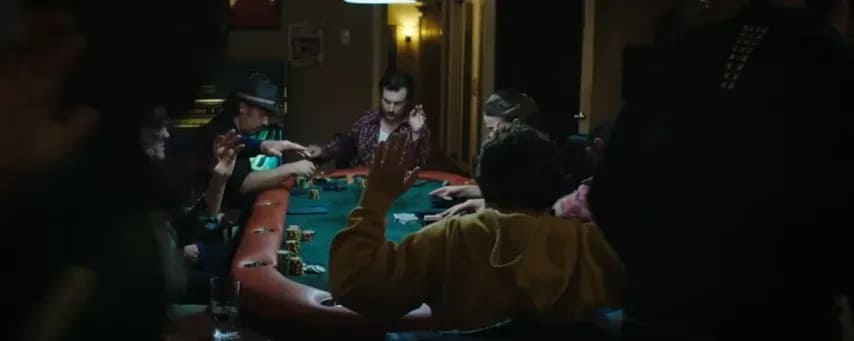 此外,影片充满虚假感。开场安迪告诉我们扑克关乎数学、GTO 与范围,但后续相关讨论仅出现一两次,复杂策略元素更是从未展现。演员不必是扑克高手,但他们有责任让我们信服。
