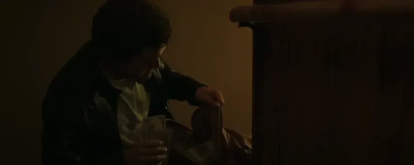抢劫后,安迪告诉女友他欠债1.5万美元,但只需要“来几张好牌”就能翻身。看到这里,连 Nik Airball 都像是世界顶级扑克高手。