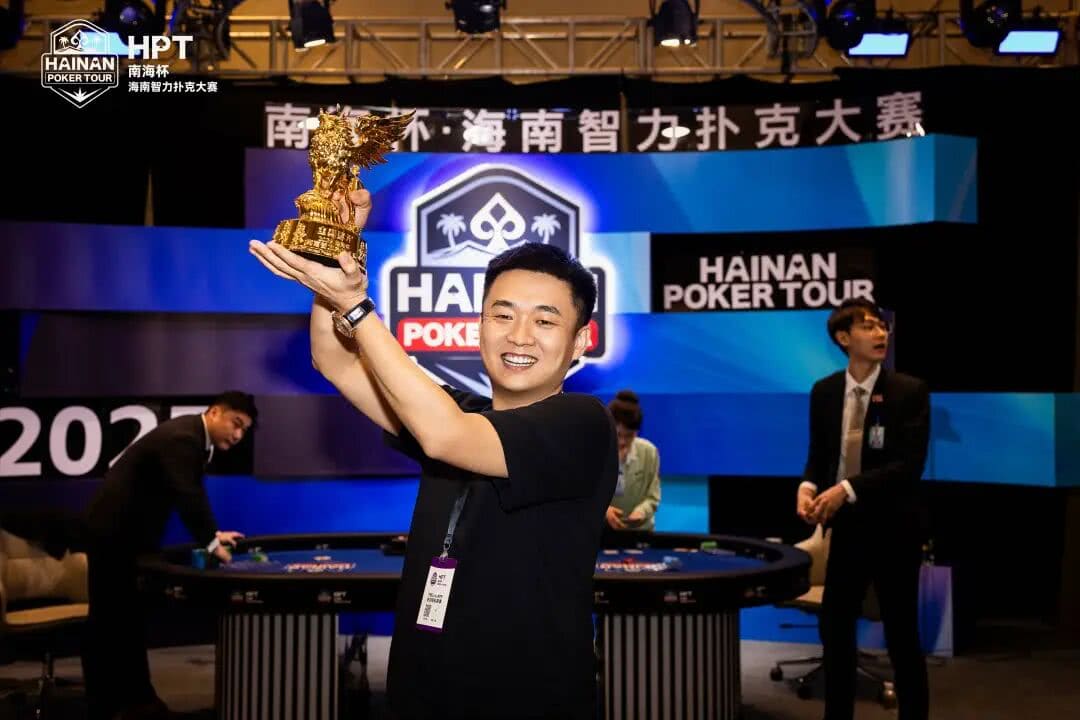 拿到HPT南海杯扑克大赛主赛冠军奖杯的那一刻,王源稞的心情算不上狂喜,更多的是一种尘埃落定的踏实——这是他人生中第一次站上扑克大赛的赛场,便一举夺魁。这个来自河南、在海口创业的年轻人,穿着简单的休闲装,说话时带着几分温和的沉稳,很难让人立刻联想到牌桌上那个敢打敢拼的夺冠者。