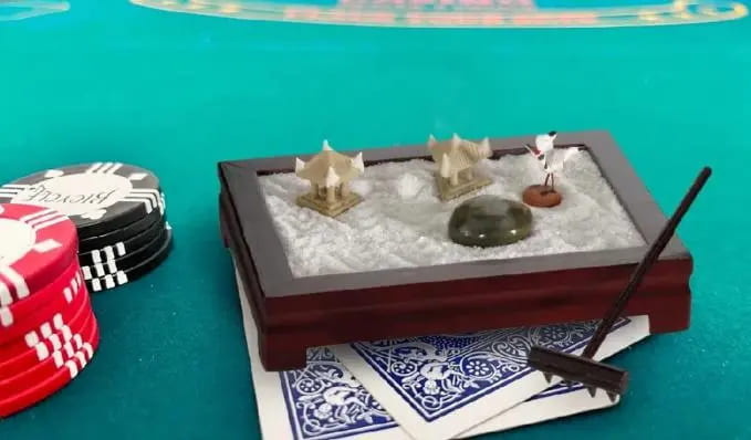 业余玩家用代币、人偶或纪念记分牌保护底牌,但这已是过时的做法。使用禅意花园牌护,无人会质疑你的镇定,你的加注也将赢得尊重。