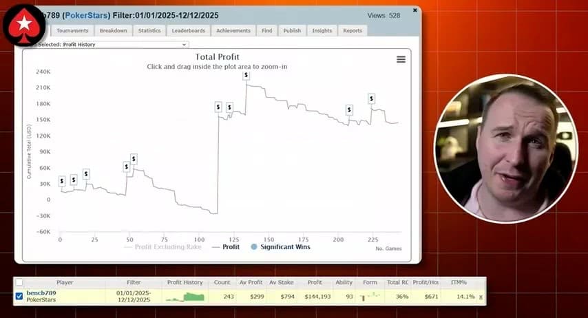 即便没有在WSOP线上主赛的冠军成绩,2025 年对Bencb来说依然大丰收的一年。
