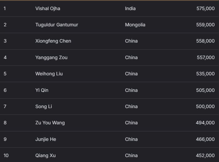 印度选手 Vishal Ojha 表现惊艳,以575,000成为 A 组领头羊,并成功领跑总记分榜!