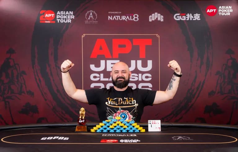 中国选手 Tianyu Wang曾在 2025 APT  济州站主赛事中获得第 17 名,本次在赛事 #4:限注三抽混合赛(A-5, 2-7)中,从 32 名选手中胜出,成功斩获个人首座 APT 冠军!赢得 414.5 万韩元(约 2908 美元)冠军奖金,成功将混合游戏冠军收入囊中。