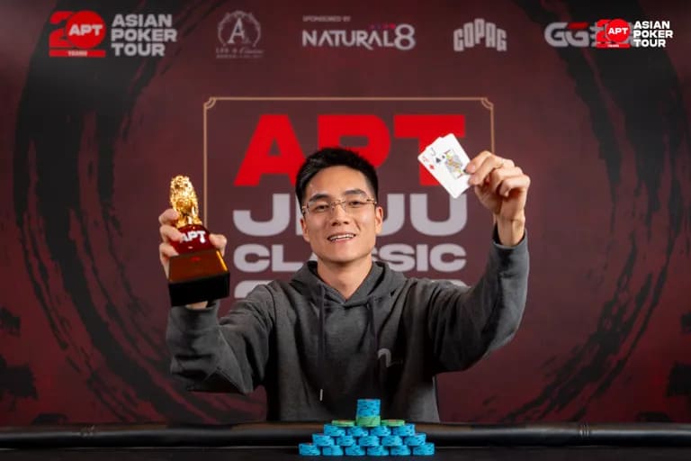 中国选手 Zhi Hang Zhou 在赛事 #7:极速无限注奥马哈高牌赛中,从 35 名选手中脱颖而出,成功斩获个人首座 APT 冠军,赢得 367.9896 万韩元(约 2582 美元)冠军奖金。