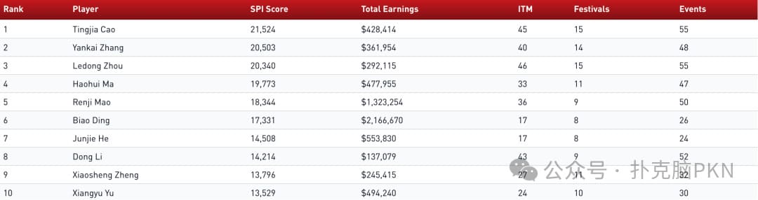 Somuchpoker指数(SPI)排名看的是亚太赛场的参赛密度和成绩稳定性,榜单里也藏着两类大神——深耕本土的稳定输出派和冲出国门的高额桌大佬,一起来看看前十风采吧!