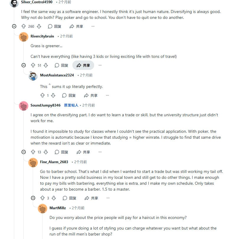 2011年辍学打牌,Black Friday后用剩余资金开小生意,苦了十年。现在收入远超经济学硕士中位数,简历上“前职业扑克玩家”反而成了大加分项——老板觉得这种人抗风险、懂概率、执行力强。