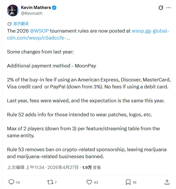 距离2026年世界扑克系列赛(WSOP)开幕不到一个月,官方悄然发布了一份新版赛事规则。
