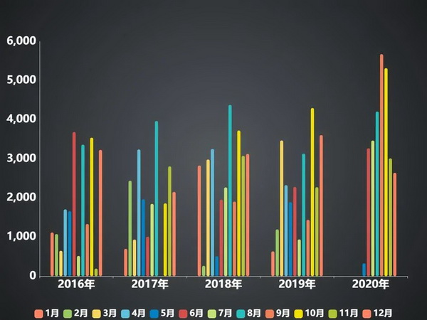 2016—2020 每年每月参赛人数