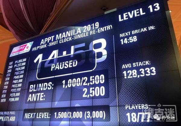 Mannur在当天的比赛中基本处在中下游的状态,但都没有出局的风险,可也没真正领跑过赛事的时候。最有看点的一手牌就是和第9名选手Christopher Pham Le翻牌前全押的那手牌,淘汰对手后Mannur收获了一定量的筹码。