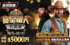【EV扑克】推荐赛事:10/5-10/27百万赏金猎人大奖赛 保底奖励5000万